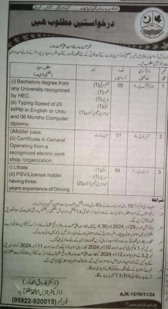 This opportunity allows candidates to work in a reputable government department, ensuring professional growth while contributing to the development of Azad Jammu & Kashmir.