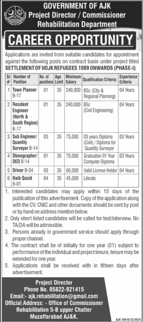 Job Details Job Detail Information Posted On 12/12/2024 Last Date 27/12/2024 Location Muzaffarabad Education Bachelor Company Government of AJK Rehabilitation Department Address Office of Commissioner Rehabilitation, 5-B Upper Chatter, Muzaffarabad, AJ&K Number of Vacancies 13 Join WhatsApp Channel [Join here for Daily Job Updates] Job Description The Government of Azad Jammu & Kashmir has announced … Read more