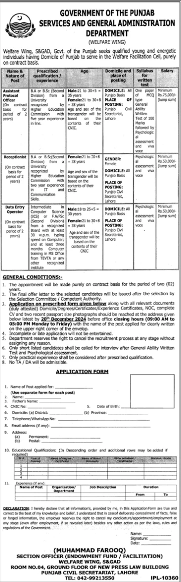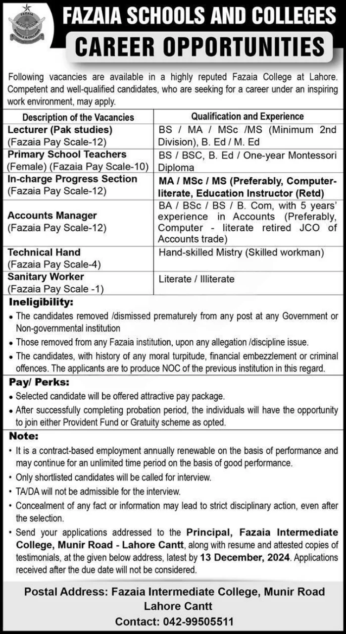 Job Details Available Positions and Job Details Position No. of Vacancies Qualification Duties Sweeper 2 Middle pass; preference for prior experience. Maintain cleanliness of office premises; assist staff with cleaning tasks. Naib Qasid 4 Middle pass; preference for relevant experience. Assist office staff, transport documents, and maintain office files. Laboratory Assistant 4 Matric; relevant experience … Read more