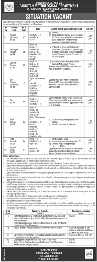 - Recruitment Policy: As per Establishment Division’s Recruitment Policy (22-10-2014).