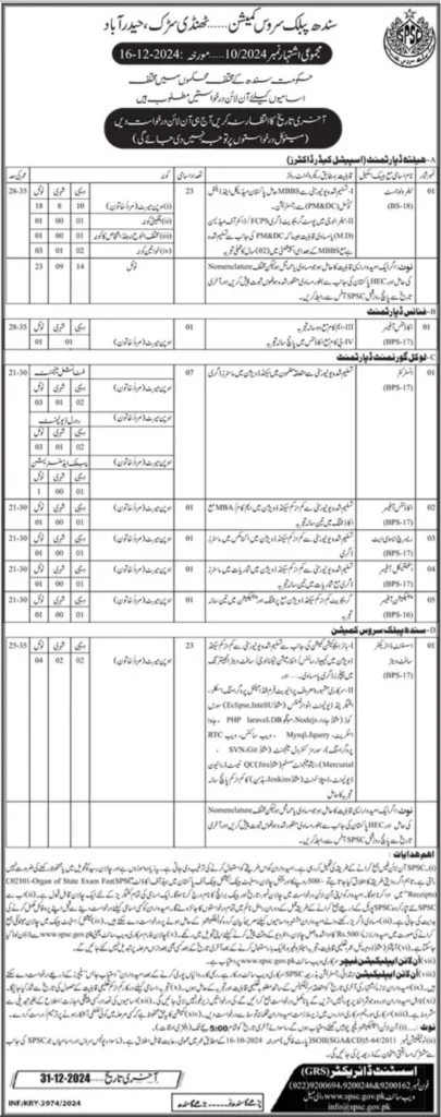 Don’t miss out on this opportunity to apply for Jobs Vacancies in Govt of Sindh through SPSC. Secure your future with a government job offering stability and growth in Sindh’s leading departments. Make sure to submit your application before the December 31, 2024 deadline to be considered for these rewarding positions.
