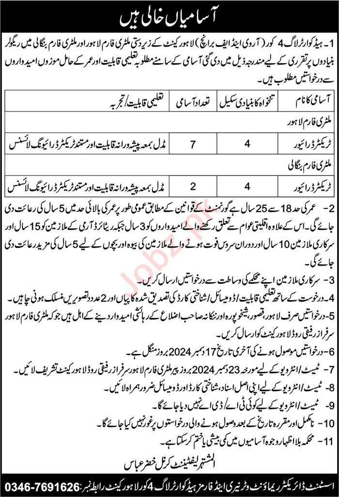 1. Tractor Driver (Model Bandi Farm Lahore)